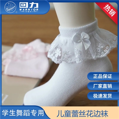 回力女童花边袜 白色学生纯棉儿童 公主袜